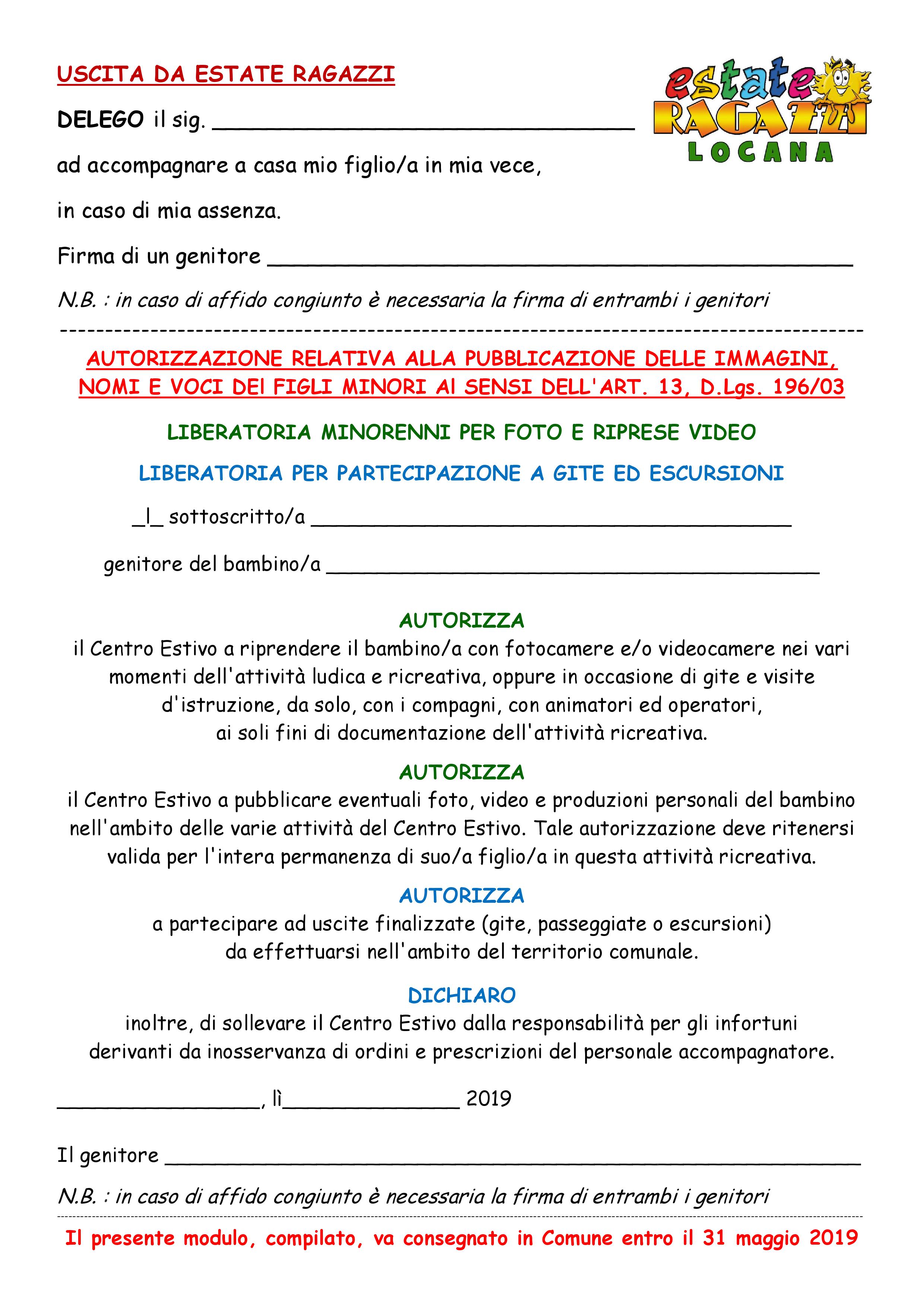E' poi possibile iscriversi all’inizio di ogni settimana presso la sede dell’Estate Ragazzi in Via Torino (locale mensa delle Scuole).