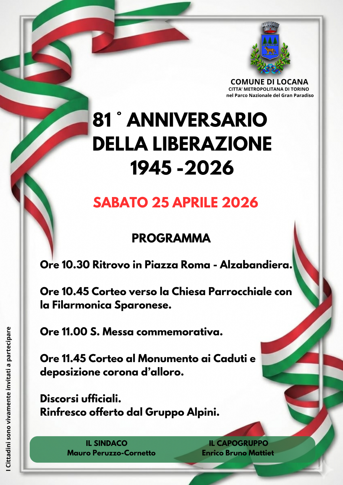 Ore 10.30 Ritrovo in Piazza Roma - Alzabandiera