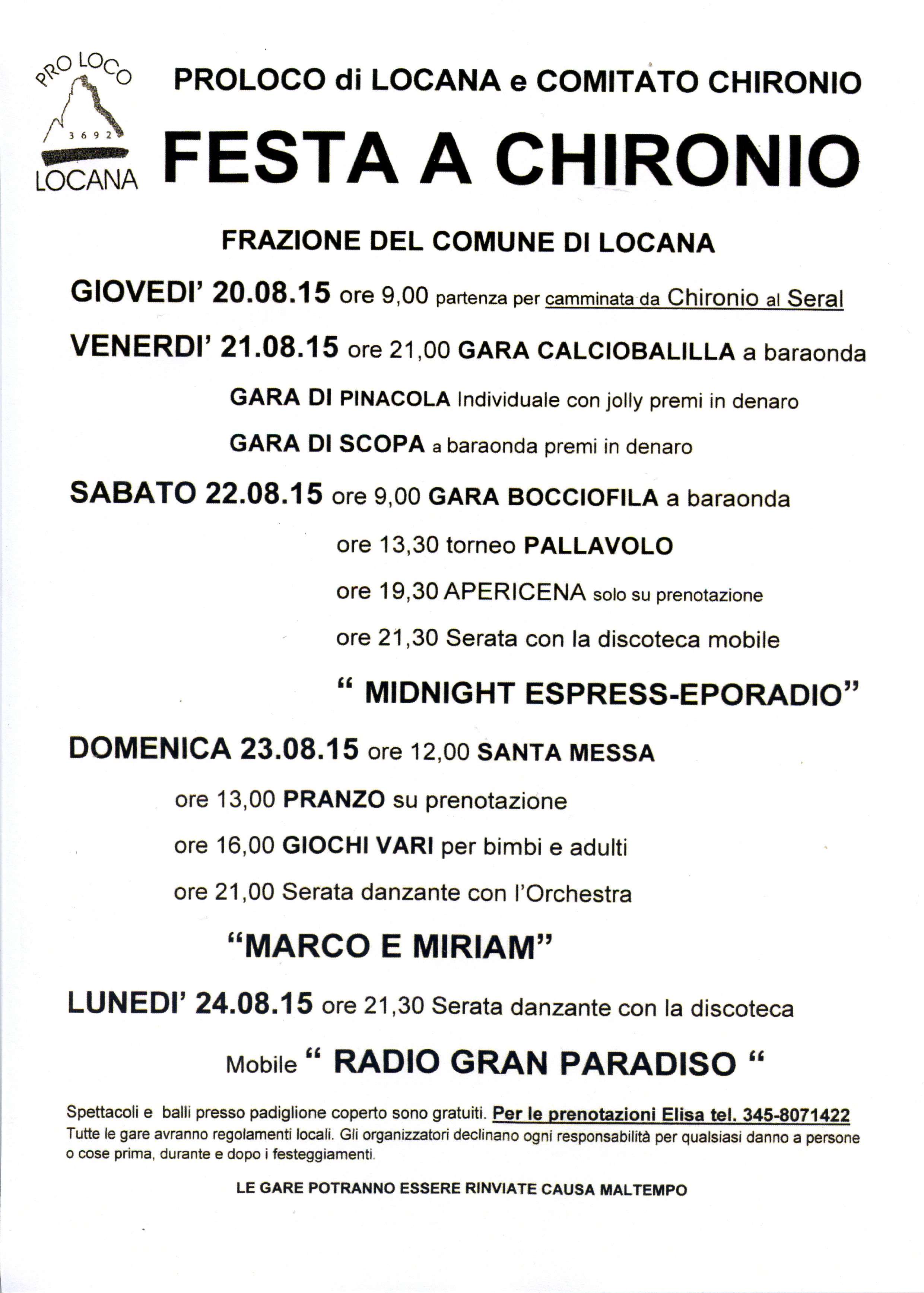 h. 21.30 Serata danzante con la discoteca mobile "Radio Gran Paradiso"