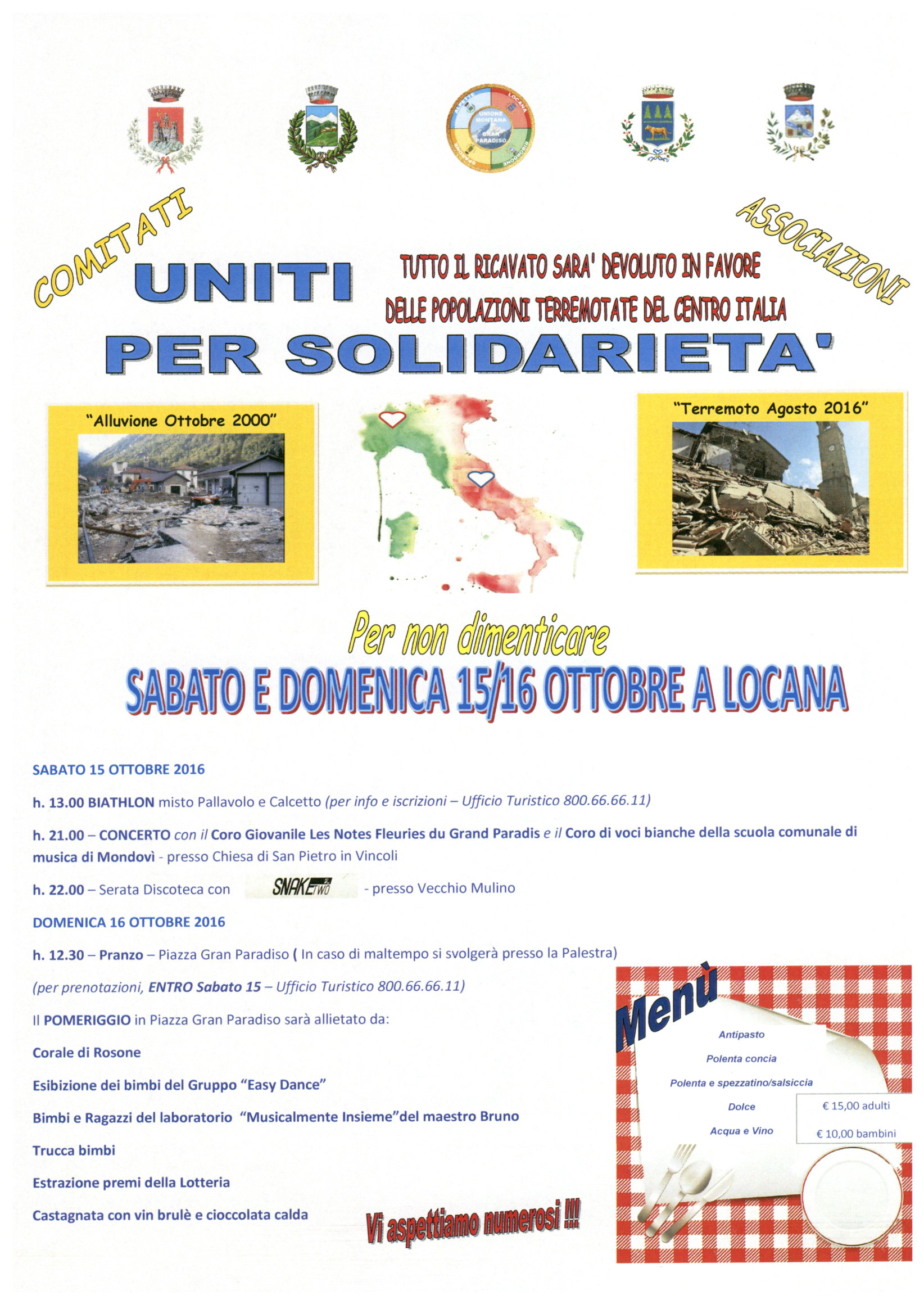 Tutto il ricavato sarà devoluto in favore delle popolazioni terremotate del centro Italia