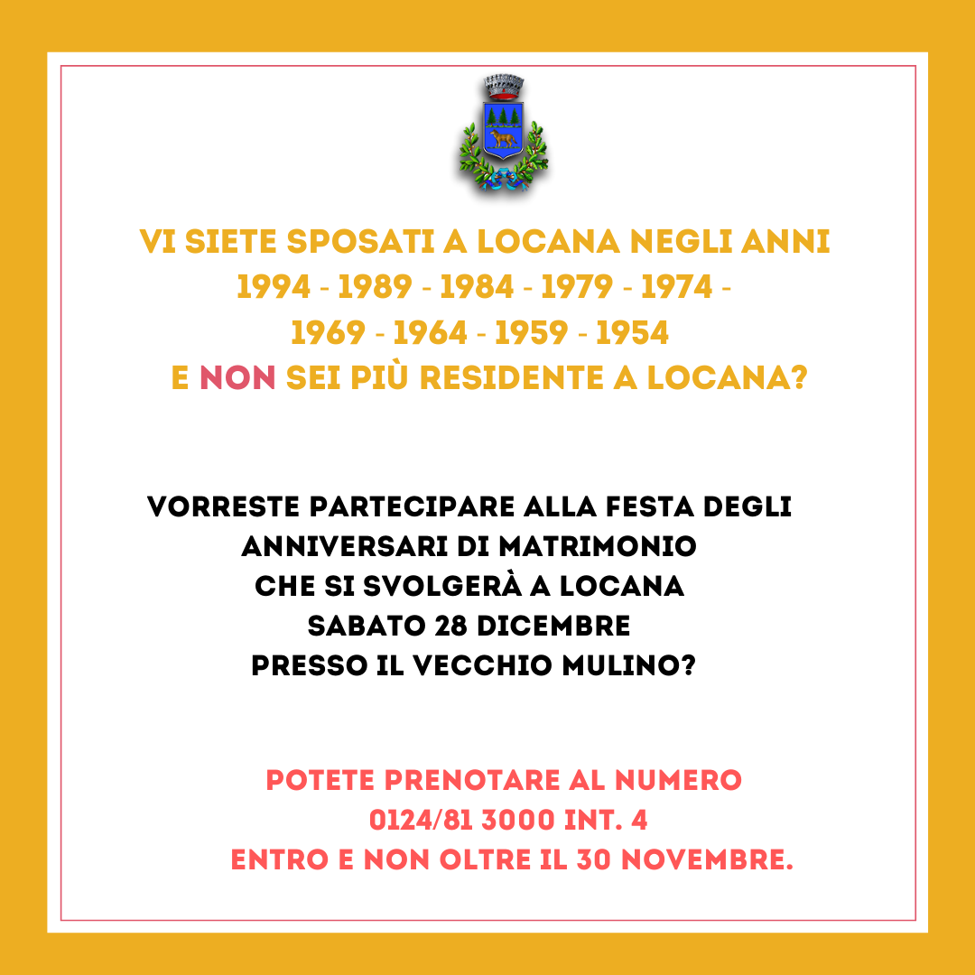 Vi siete sposati a Locana negli anni 1994 - 1989 - 1984 - 1979 - 1974 - 1969 - 1964 - 1959 - 1954 e non sei più residente a Locana?