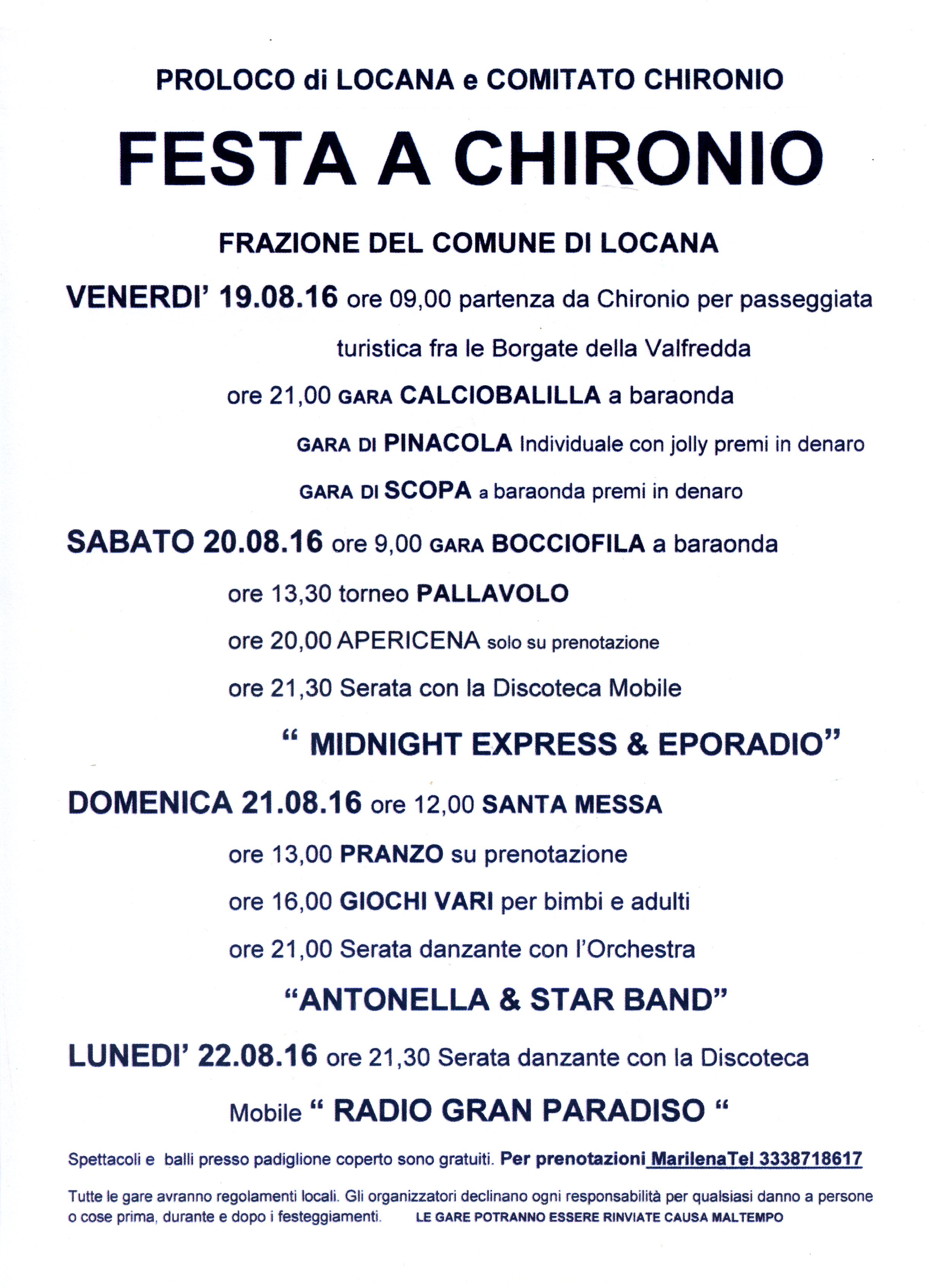 Comitato Chironio, Pro-loco Locana