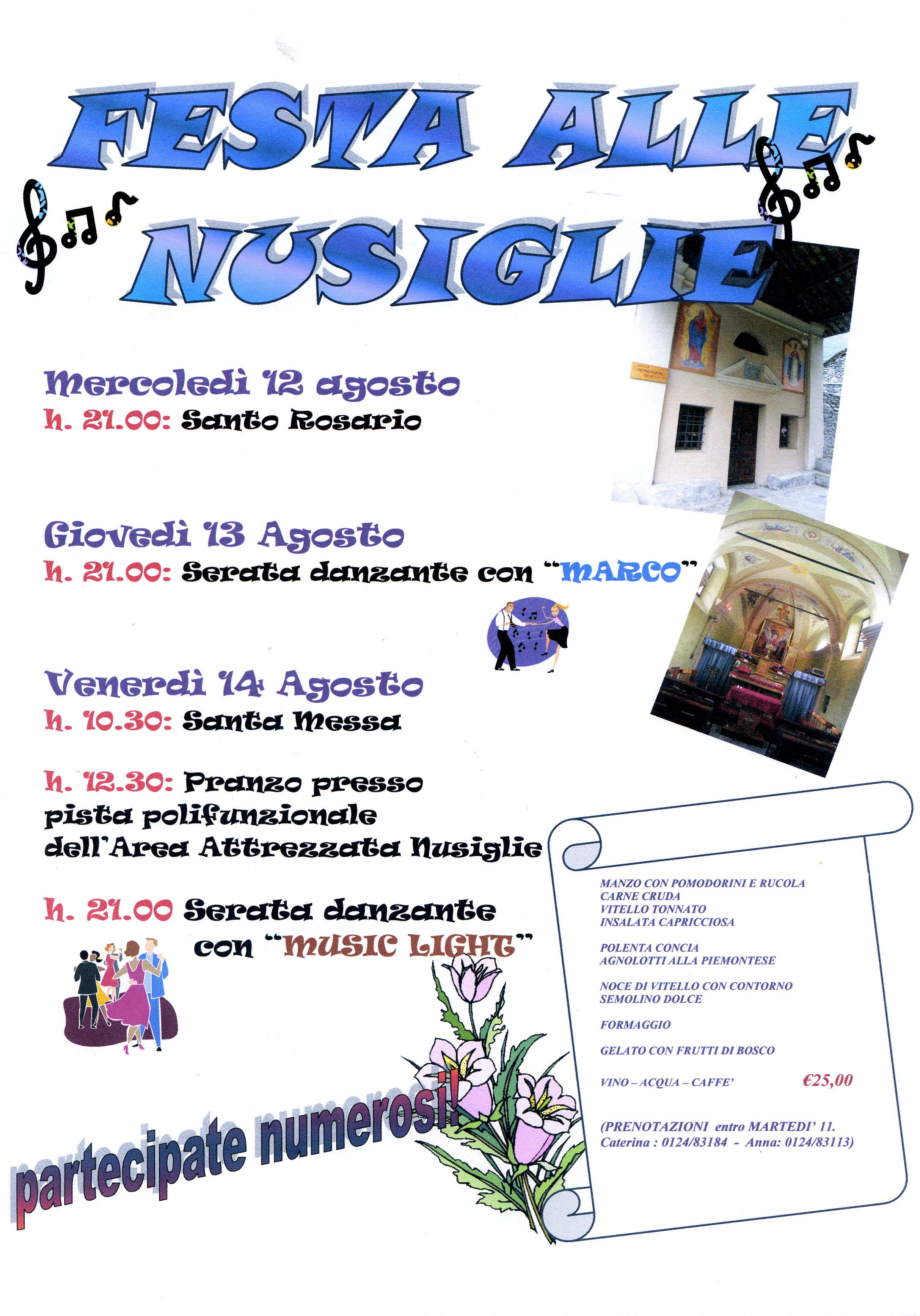 h. 12.30 - Pranzo presso pista polifunzionale dell'Area Attrezzata Nusiglie