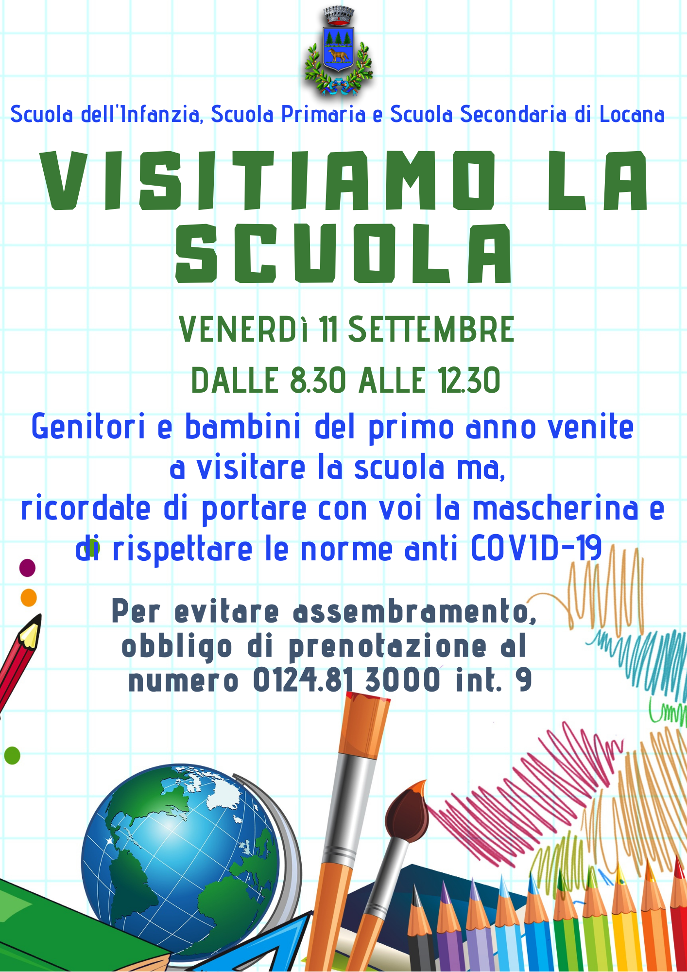 Genitori e bambini del primo anno venite a visitare la scuola ma, ricordate di portare con voi la mascherina e di rispettare le norme anti COVID-19.