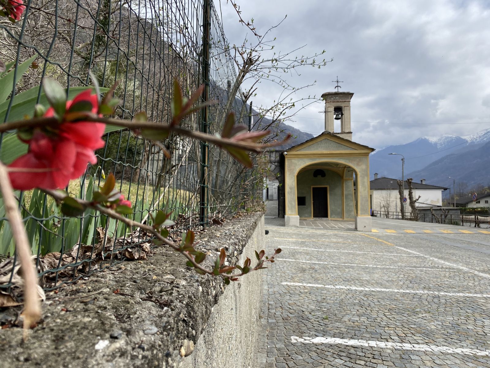 La Cappella sorge a Locana capoluogo e si imposta su un'unica aula rettangolare aggregata al nucleo abitativo del paese. La chiesetta, realizzata in muratura tradizionale di pietra locale, risulta tutta intonacata anche all'esterno con una sobrietà che non lascia spazio a decorazioni di alcun tipo. Il tetto, a due falde con orditura lignea e manto di copertura in 'lose', sporge molto sulla facciata dell'edificio costituendo un'area di riparo sull'ingresso della cappella, garantito da un portoncino in legno degno di nota, che si apre direttamente sulla via. L'interno è voltato a botte lunettata e rispecchia la sobrietà di linee e decorazioni denunciate all'esterno. La cella campanaria, realizzata in pietra e anch'essa intonacata, è inglobata nella costruzione ed è conclusa superiormente da un tettuccio a capanna in 'lose'. Storicamente la piccola Cappella assolveva alla funzione della 'posa dei morti' ossia al deposito dei defunti, provenienti dalle frazioni che circondano il capoluogo, prima della tumulazione presso il cimitero comunale.
