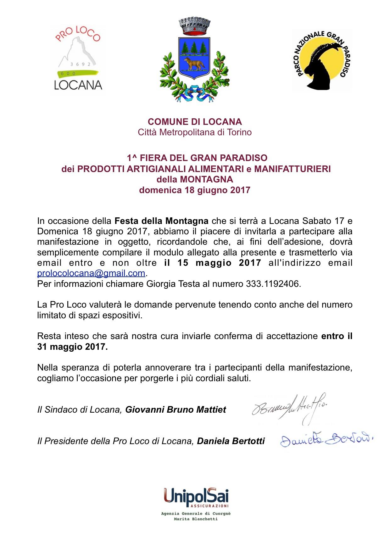 In occasione della Festa della Montagna che si terrà a Locana Sabato 17 e Domenica 18 giugno 2017.