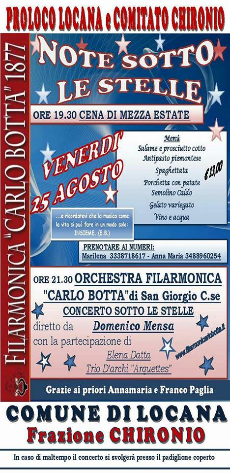 Ore 21.30 - Concerto sotto le stelle con la Filarmonica Carlo Botta di San Giorgio Canavese diretta da Domenico Mensa