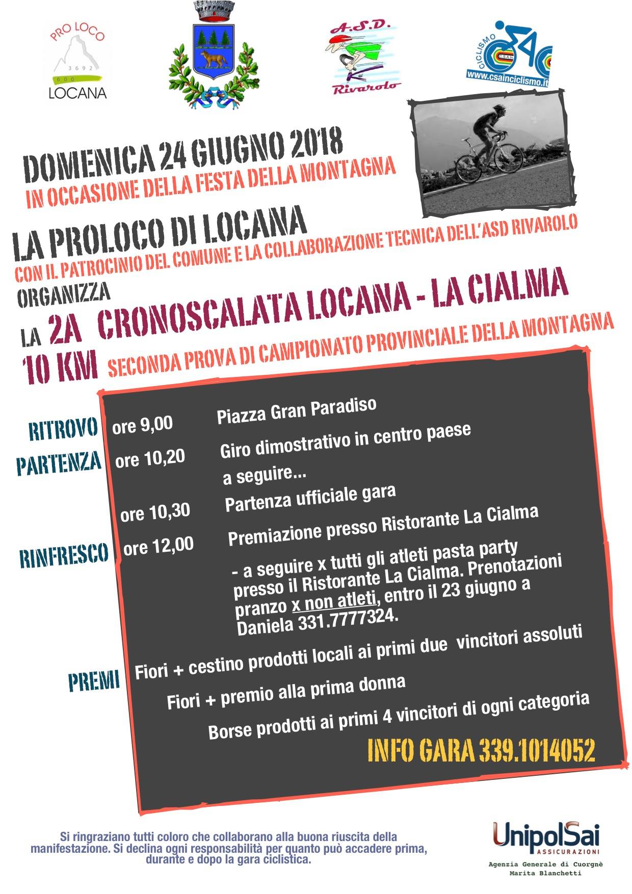 10.30 Partenza Cronoscalata Locana - La Cialma 2A prova di campionato provinciale della montagna - Locana, Piazza Gran Paradiso