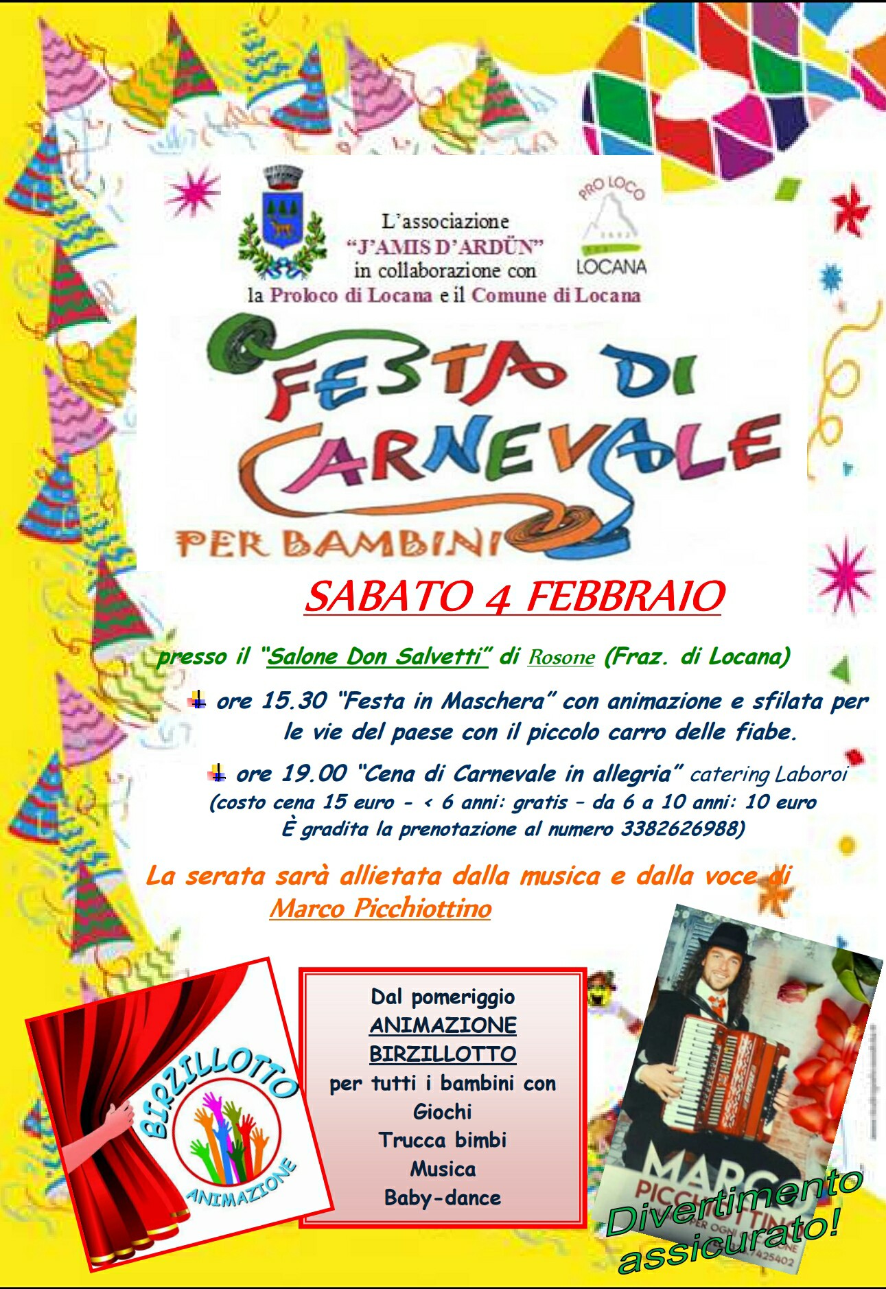 Ore 15.00 - Festa in Maschera con animazione e sfilata per le vie del paese con piccolo carro delle fiabe.