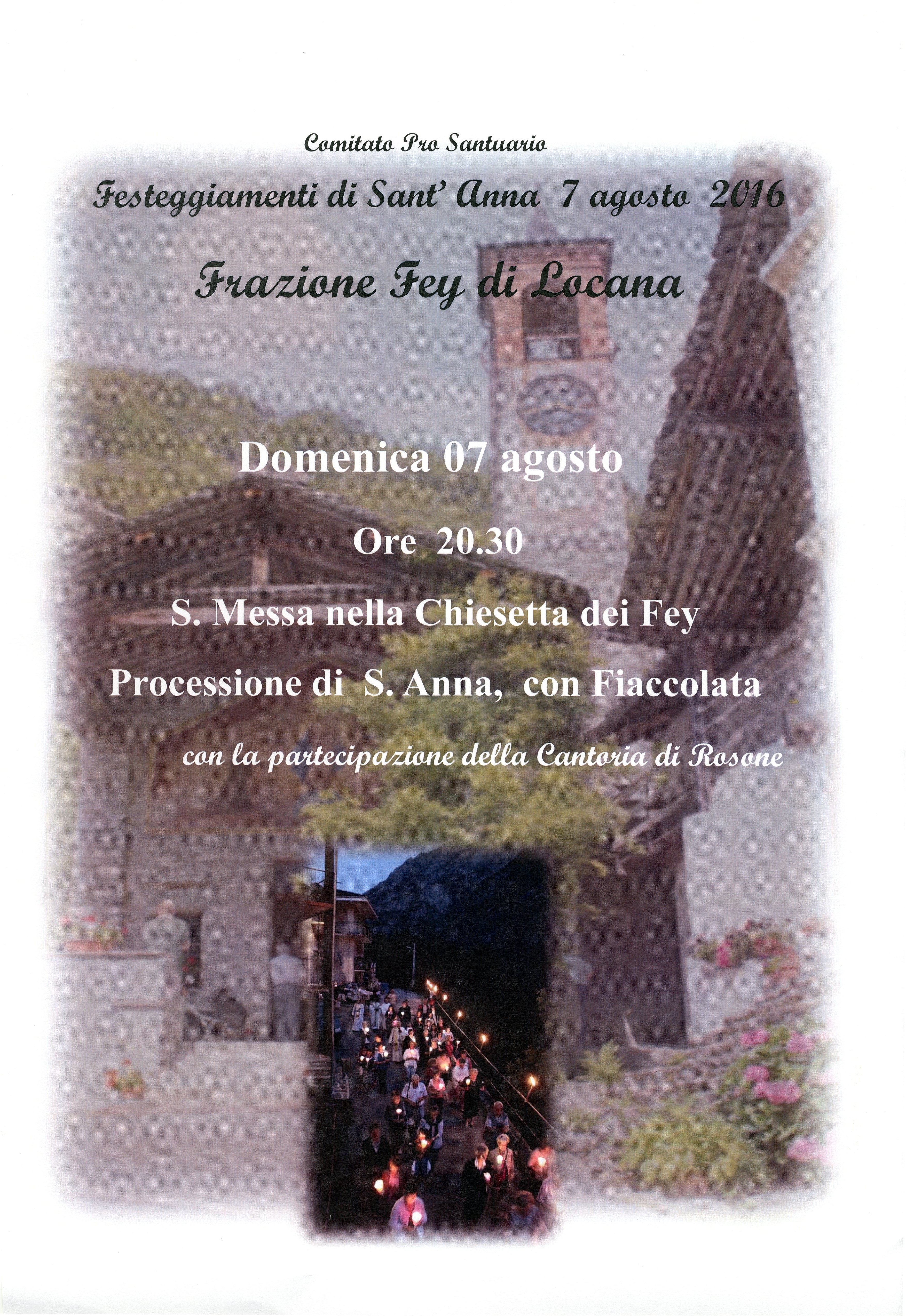 Ore 20.30 S. Messa nella Chiesa dei Fey