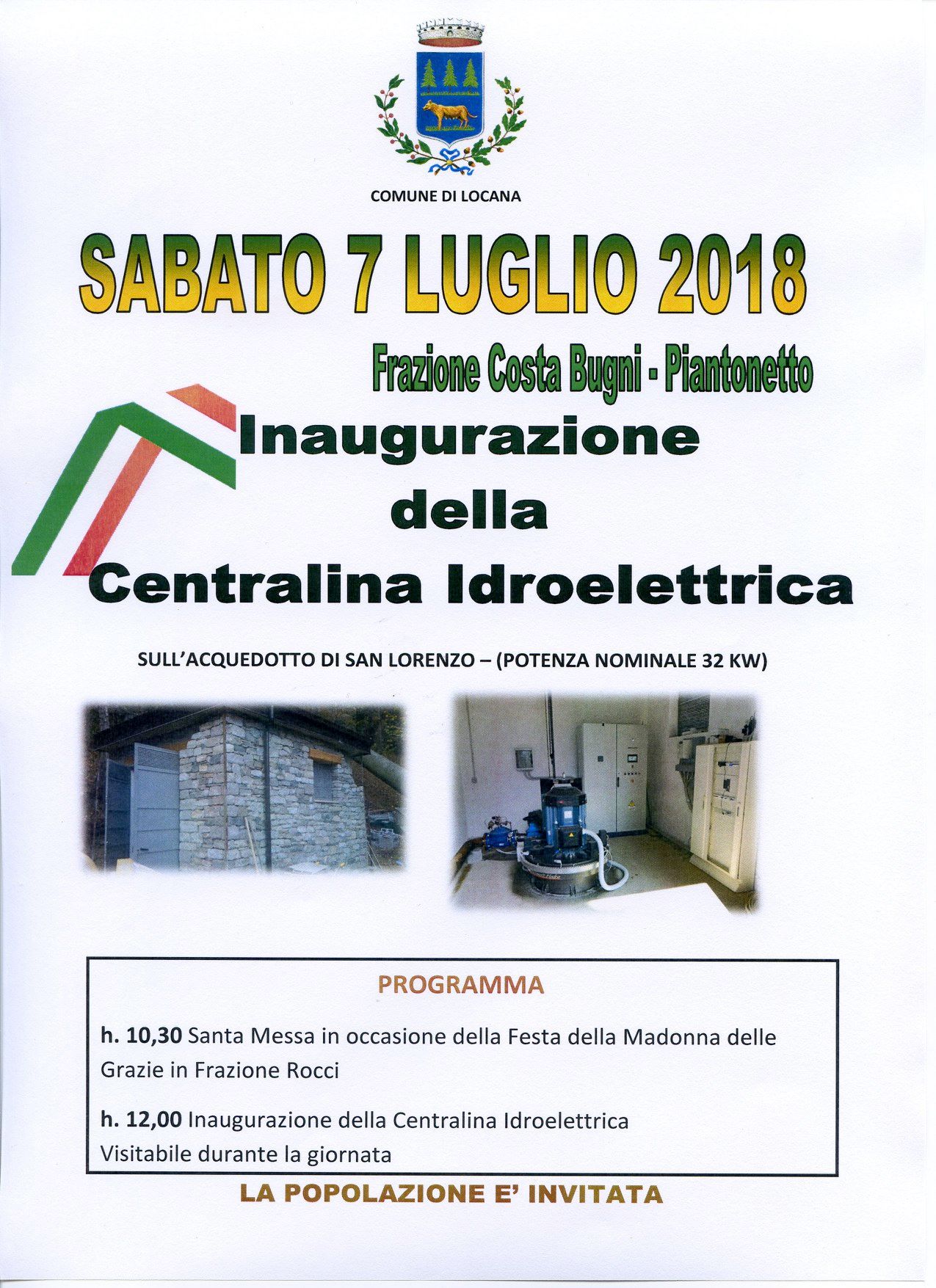 h. 12,00 Inaugurazione della centralina Idroelettrica