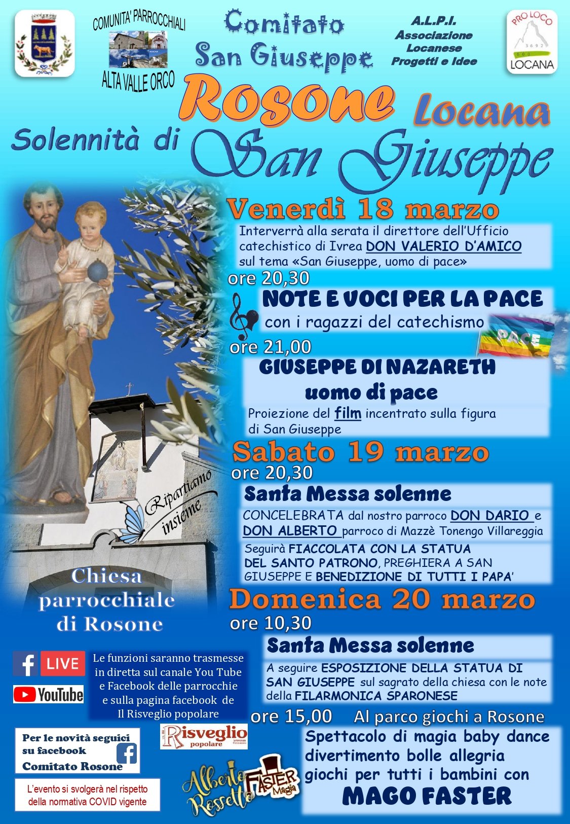 Ore 20,30 Santa messa solenne celebrata dal nostro parroco Don Dario e Don Alberto parroco di Mazzè Tonengo Villareggia. Seguirà fiaccolata con la statua del Santo Patrono, preghiera a San Giuseppe e benedizione di tutti i papà