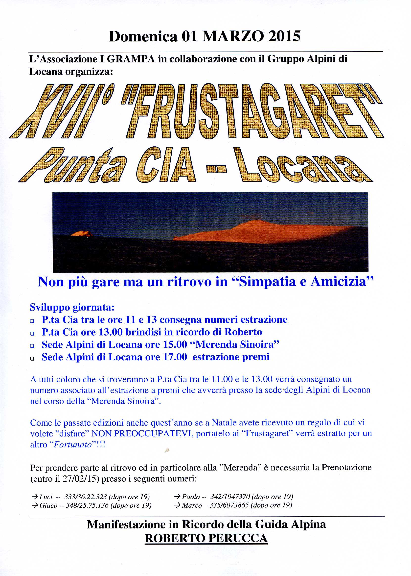 Per prendere parte al ritrovo ed in particolare alla ”Merenda” è necessaria la Prenotazione