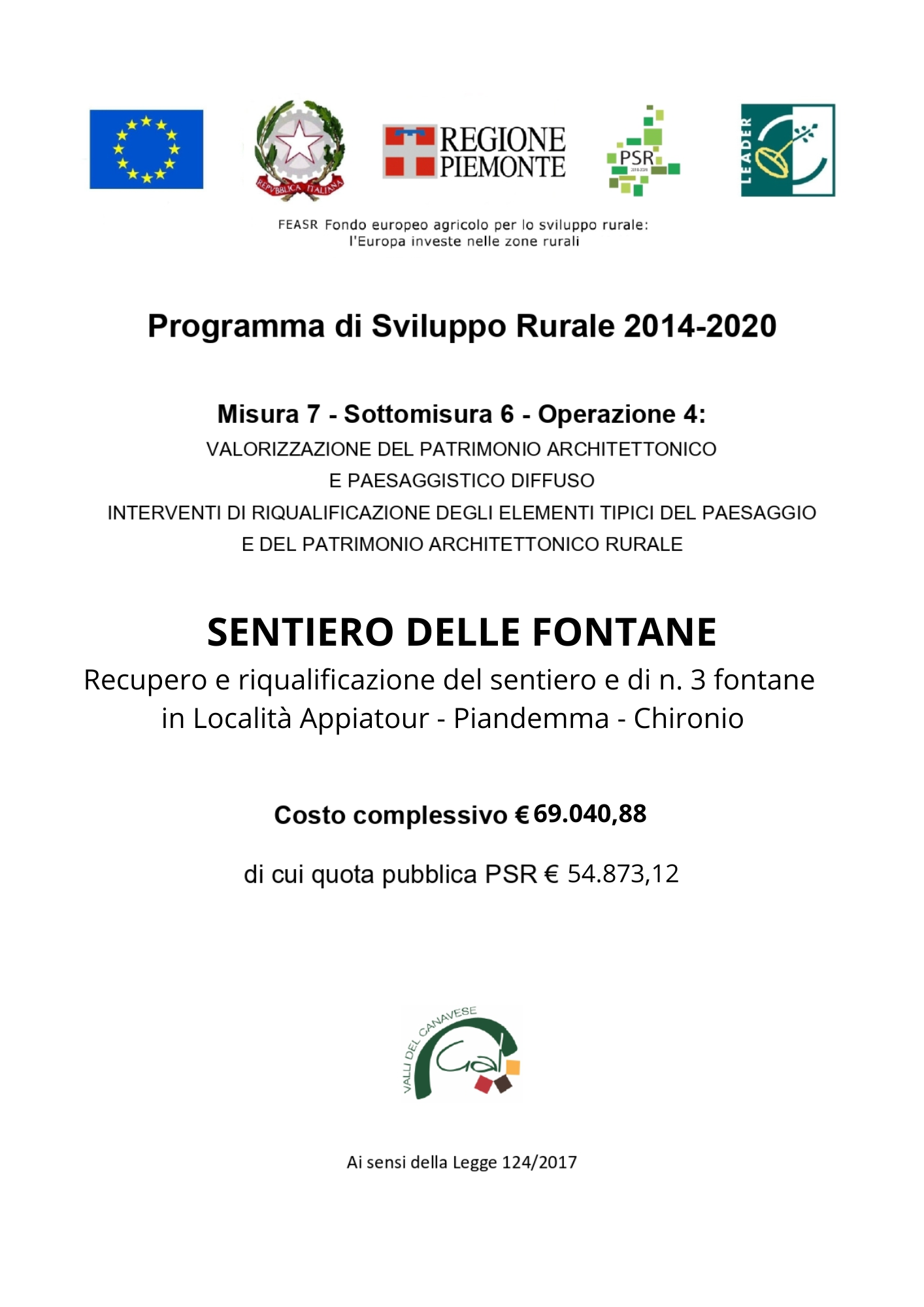 Progetto Cofinanziato GAL Valli del Canavese - PSL 2014 - 2020