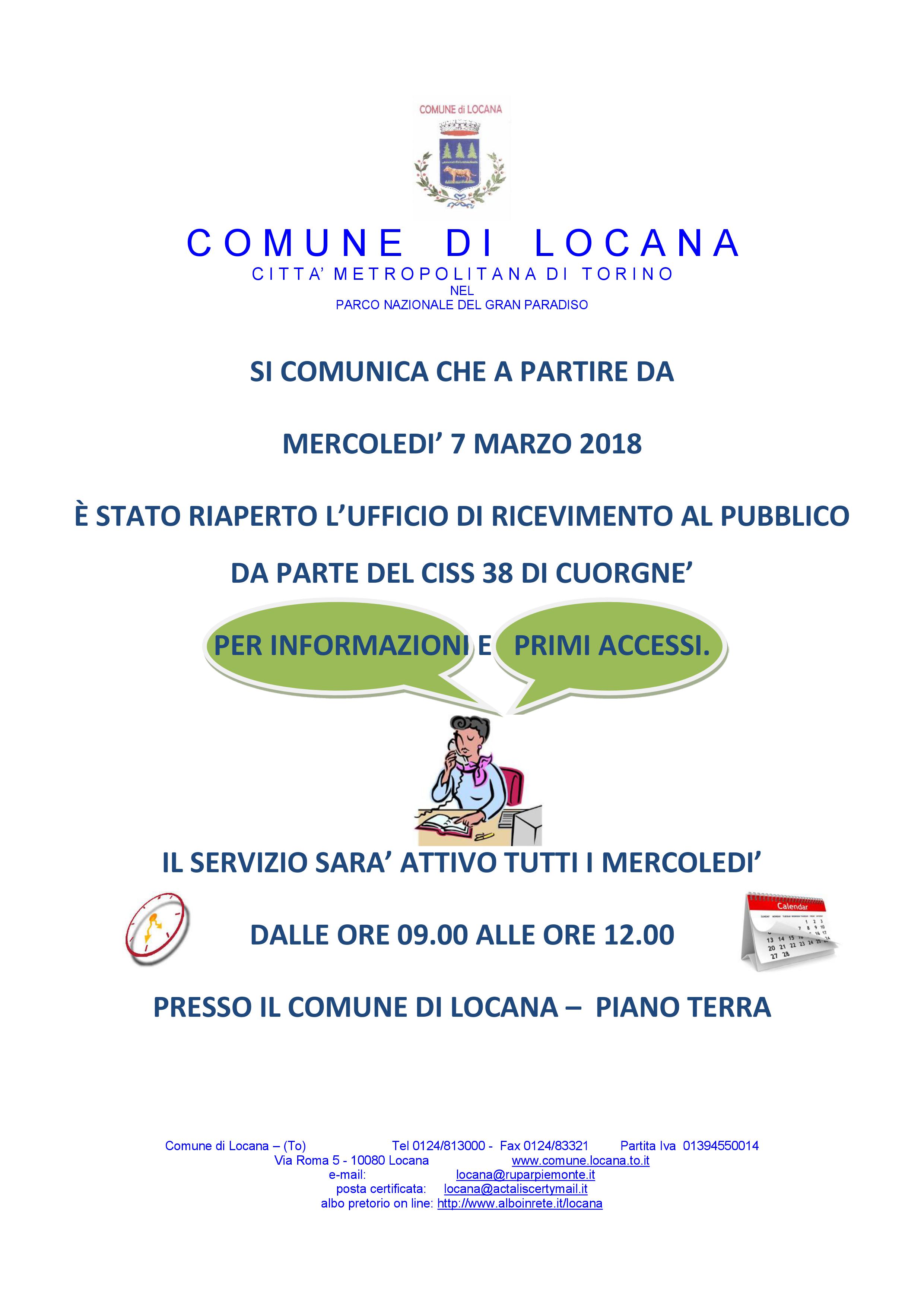 PRESSO IL COMUNE DI LOCANA – PIANO TERRA