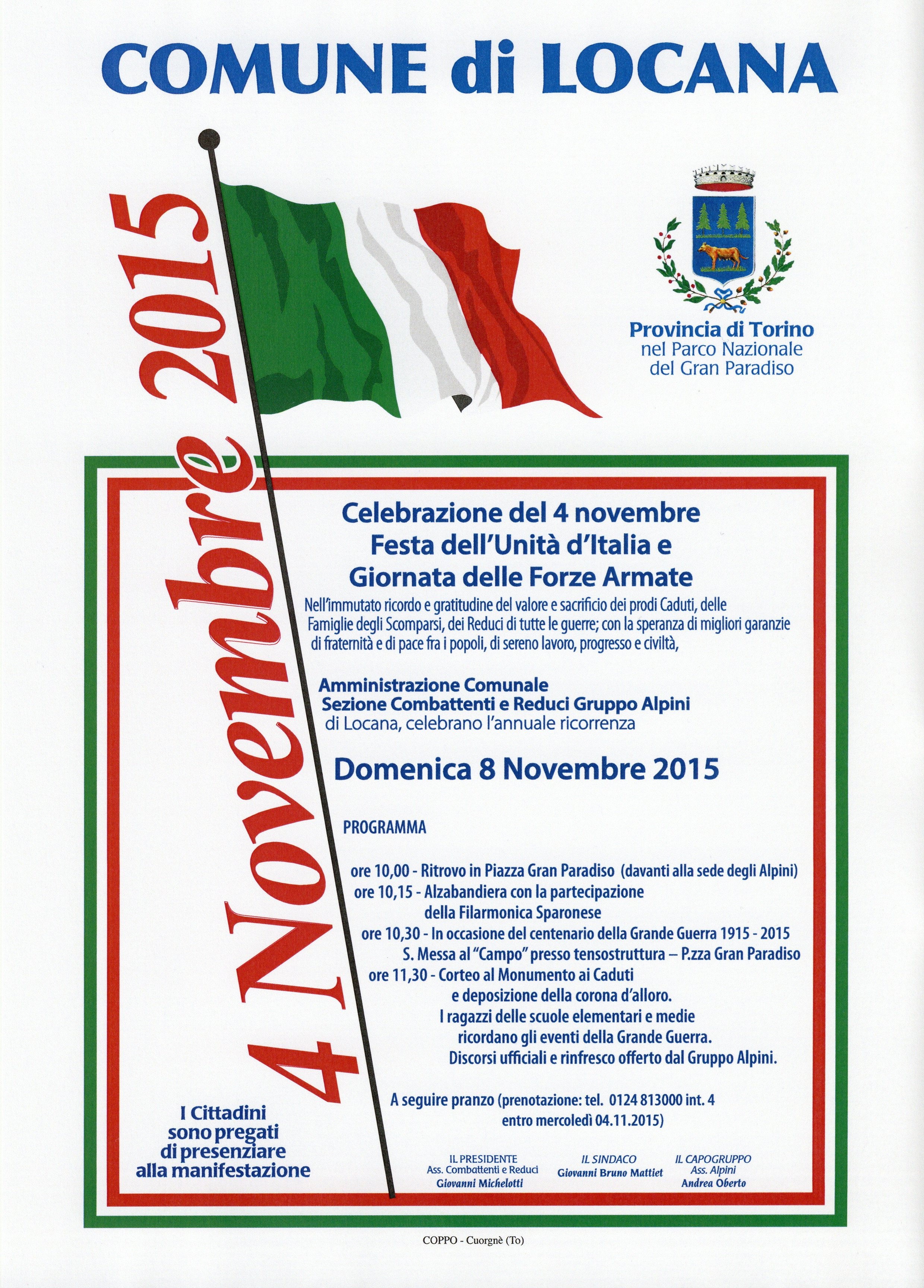 ore 11.30 Corteo al Monumento ai Caduti e deposizione della corona d’alloro. I ragazzi delle scuole elementari e medie ricordano gli eventi della Grande Guerra.