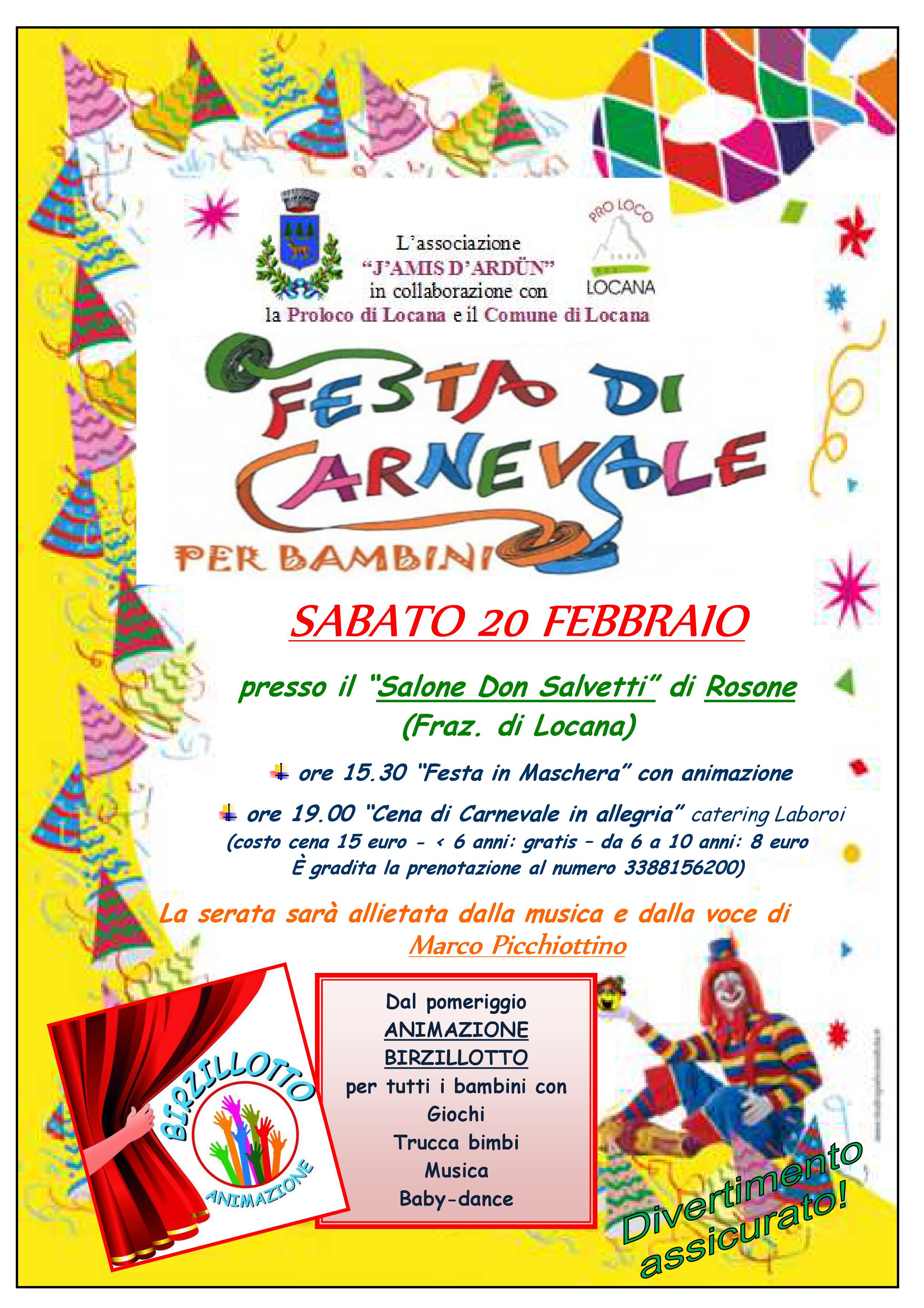 ore 19.00 “Cena di Carnevale in allegria” catering Laboroi
