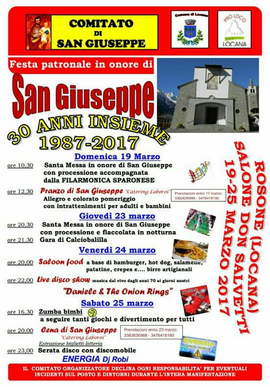 Ore 10.30 Santa Messa in onore di San Giuseppe con processione accompagnata dalla Filarmonica Sparonese