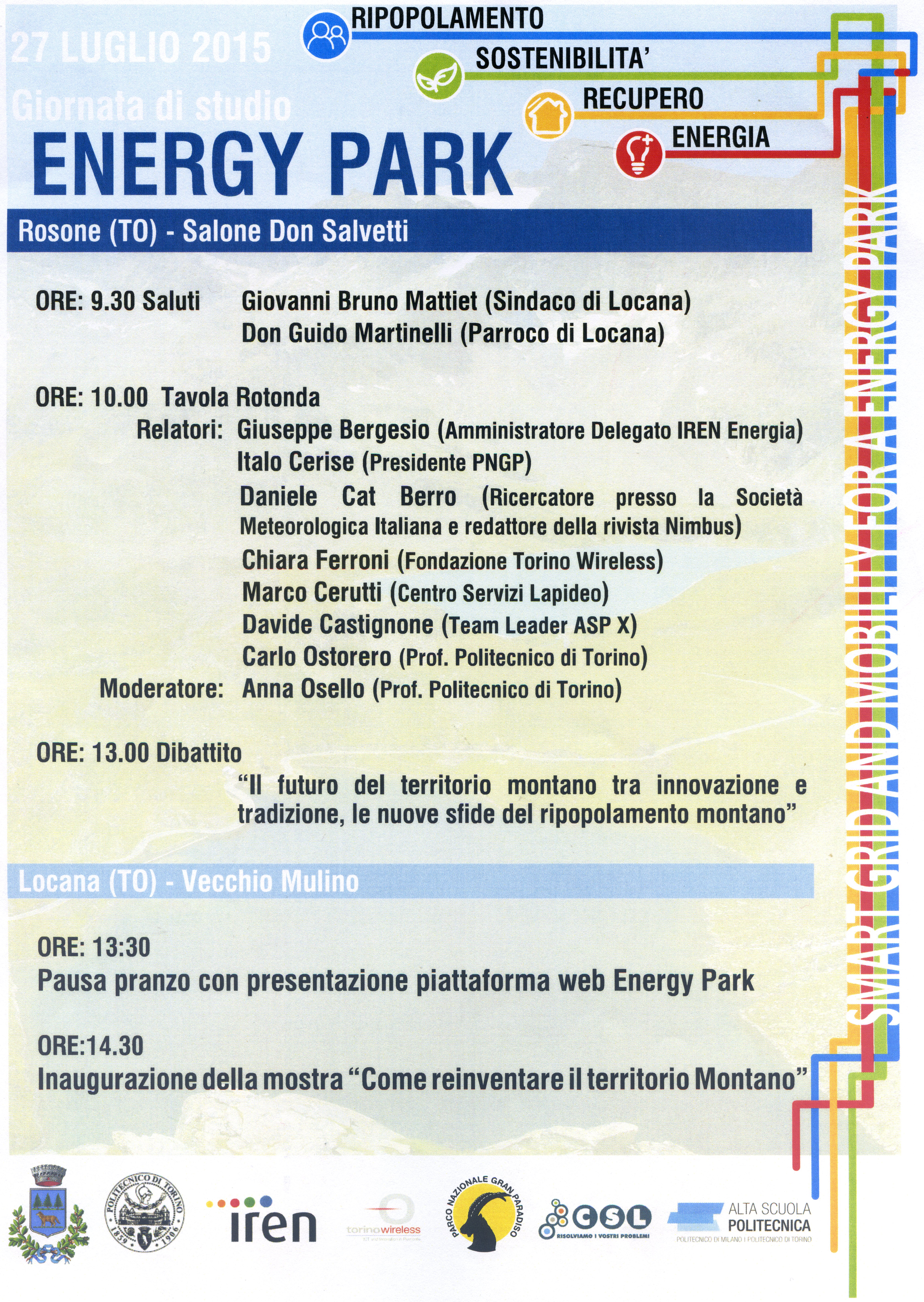 Comune di Locana, Politecnico di Torino, IREN, Torino Wirless, PNGP, CSL