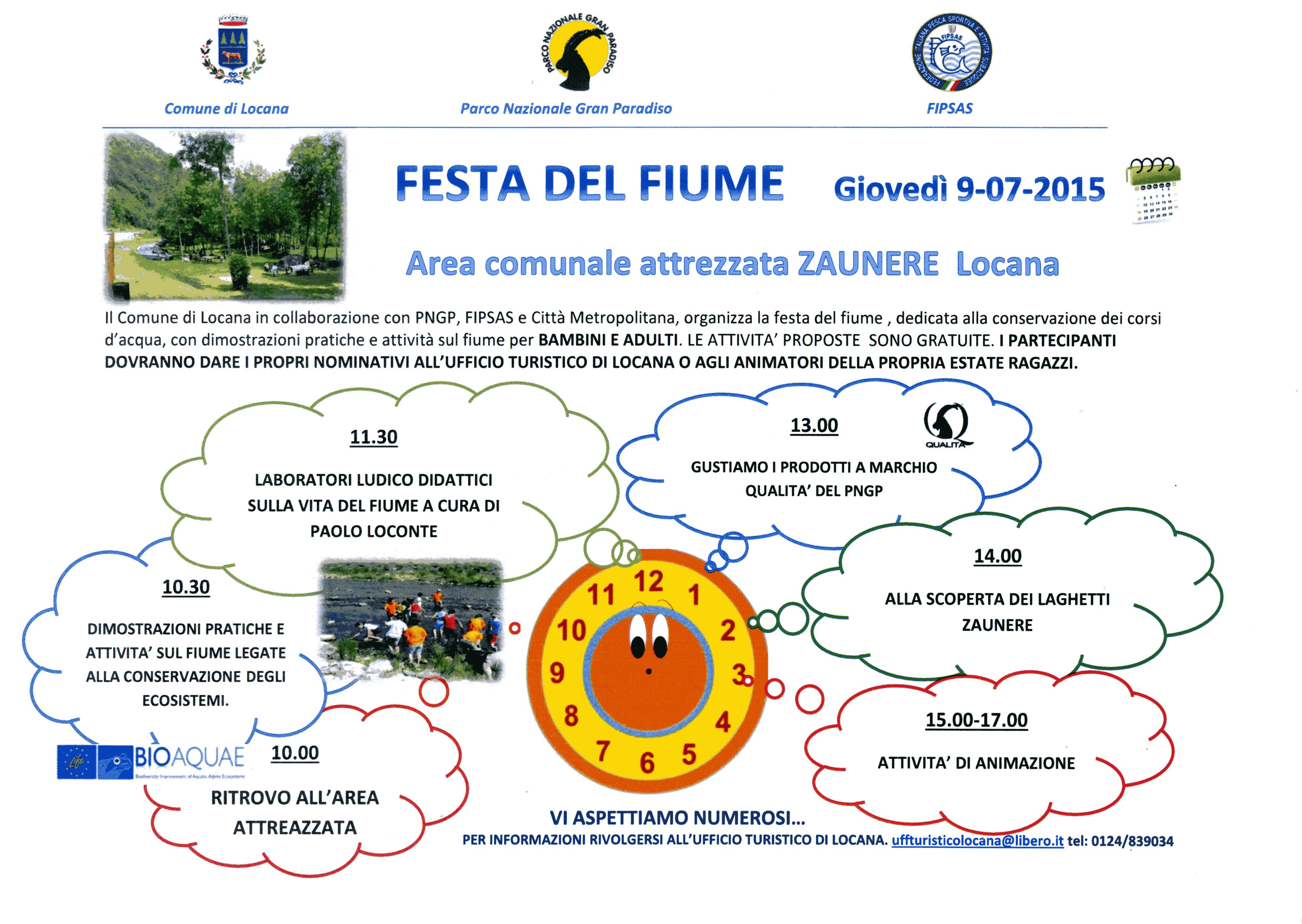 Giovedì 9 luglio a Locana si terrà la "Festa del fiume", organizzata dal Comune e dalla Pro-loco di Locana in collaborazione con il Parco Nazionale Gran Paradiso, giornata dedicata alla tutela di laghi e corsi d'acqua, con dimostrazioni pratiche e attività sul torrente Orco.