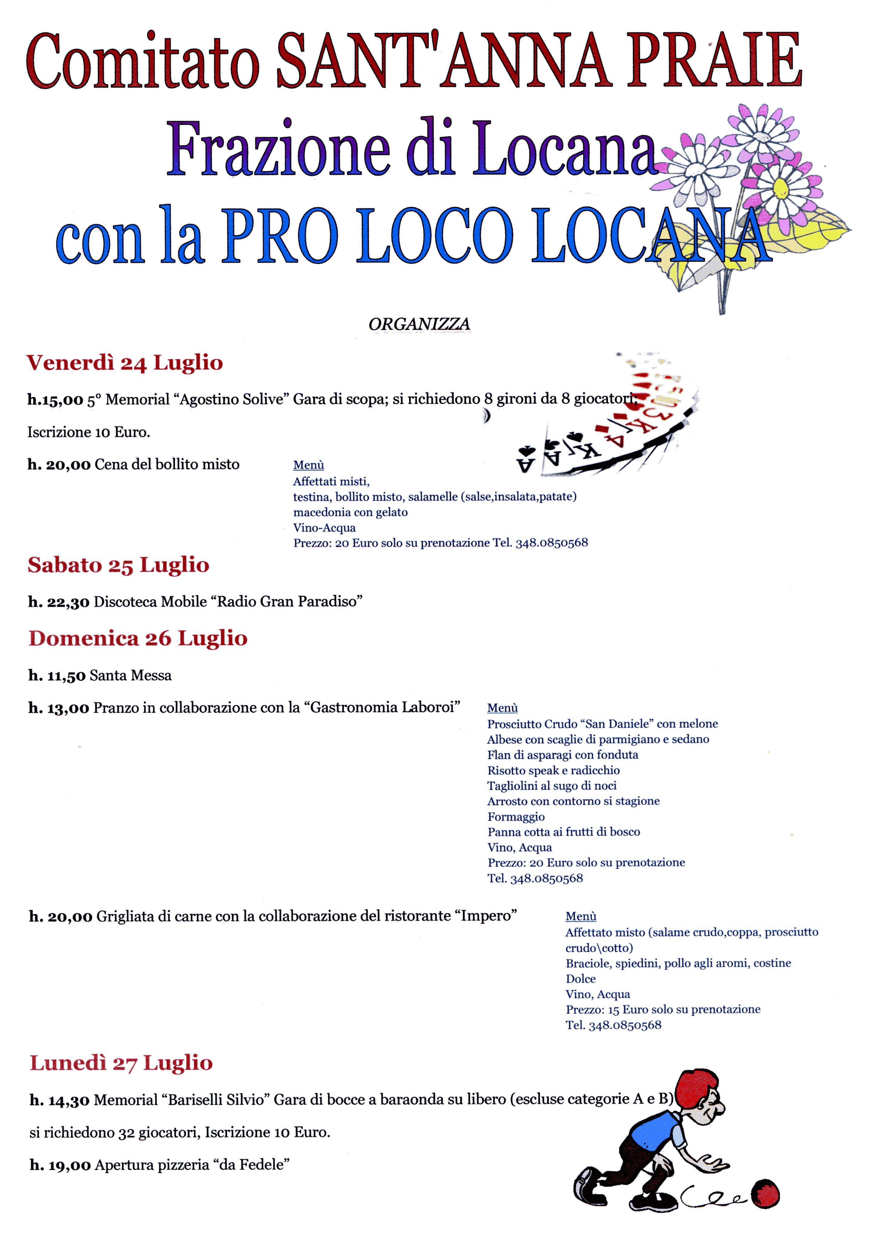 h.15,00 5° Memorial “Agostino Solive” Gara di scopa; si richiedono 8 gironi da 8 giocatori;