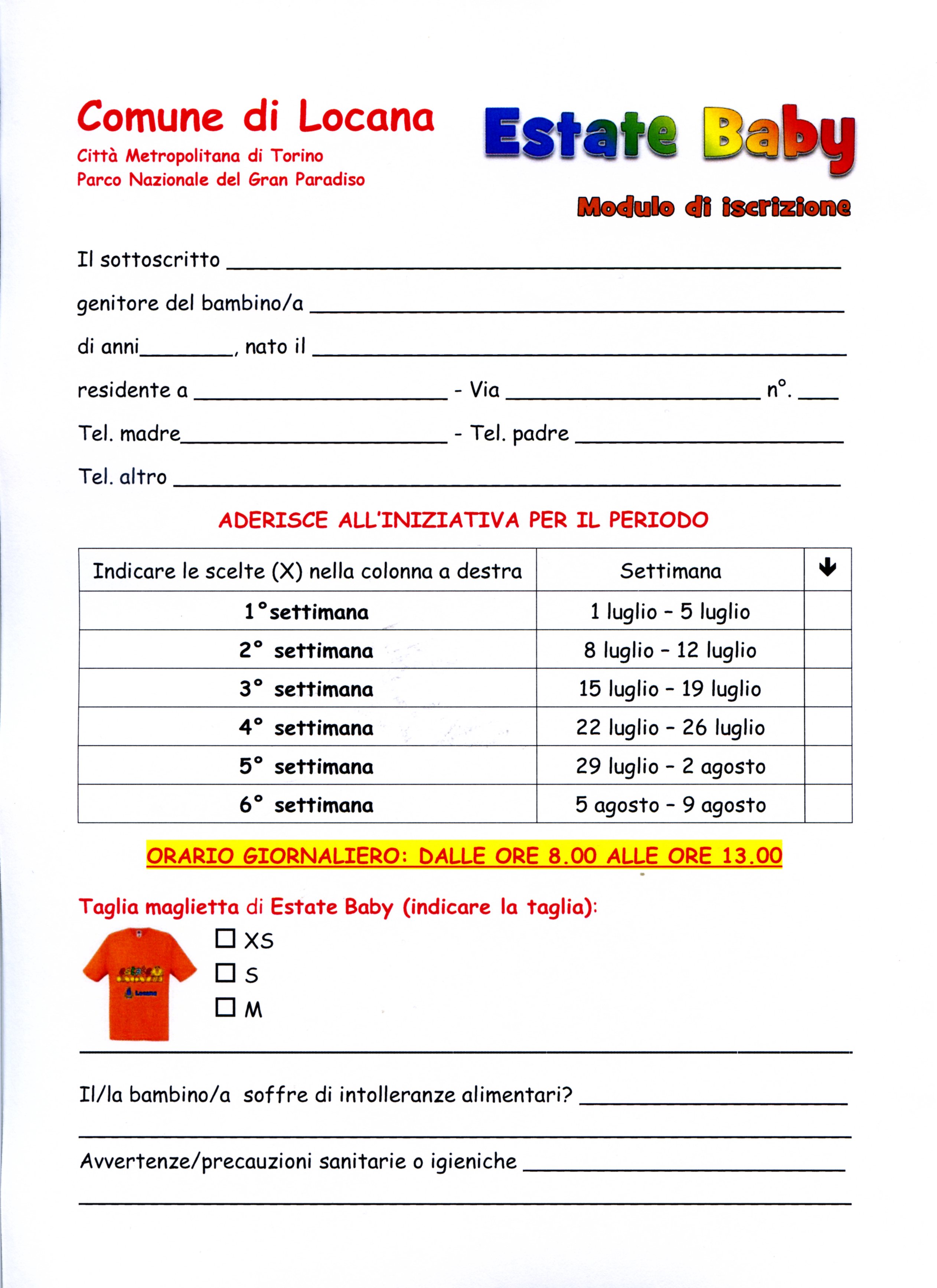 I moduli vanno consegnati in Comune entro il 7/6