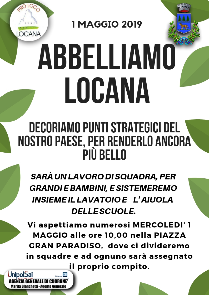 Vi aspettiamo numerosi MERCOLEDI' 1 MAGGIO alle ore 10.00 nella PIAZZA GRAN PARADISO, dove ci divideremo in squadre e ad ognuno sarà assegnato il proprio compito.