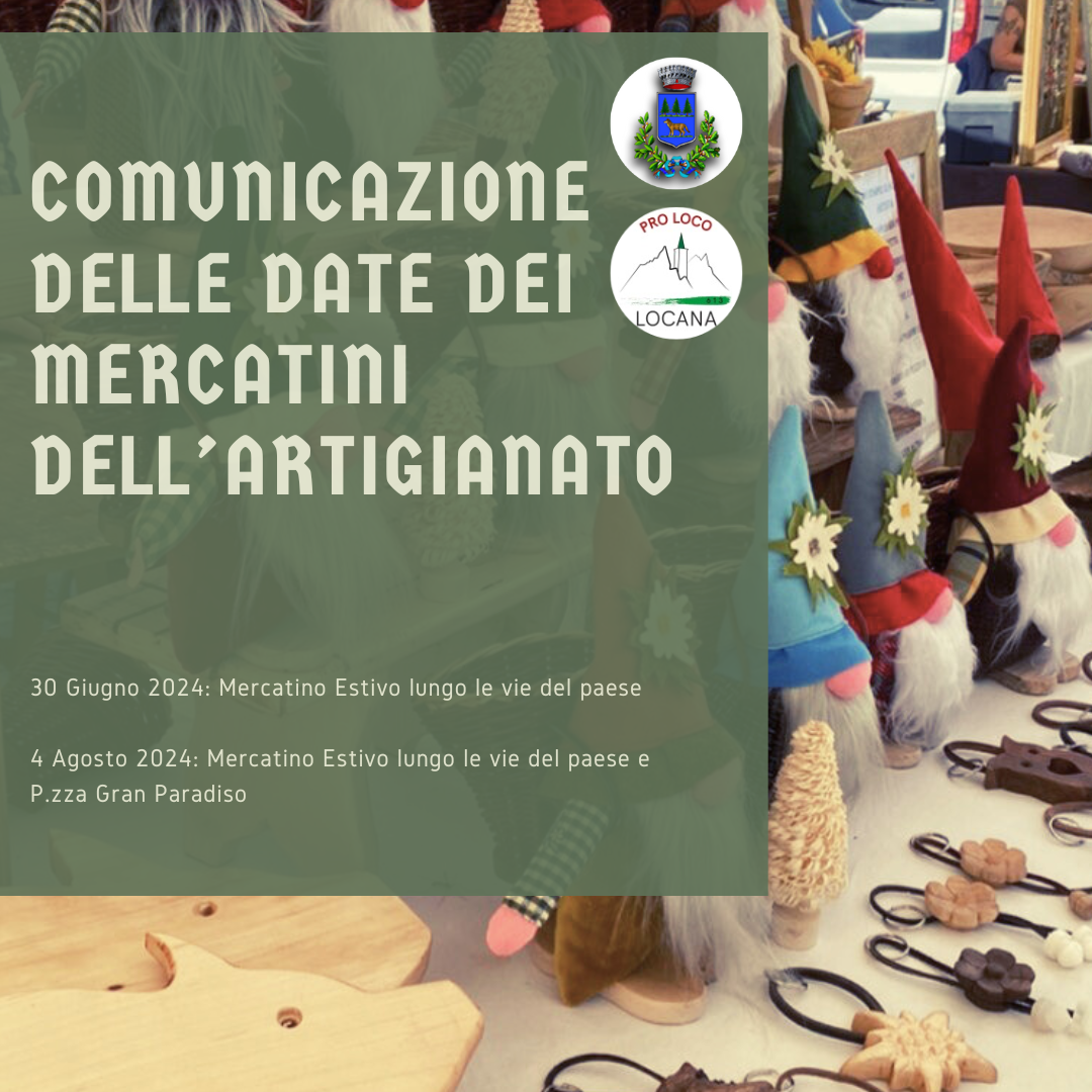 4 Agosto 2024: Mercatino Estivo lungo le vie del paese e P.zza Gran Paradiso
