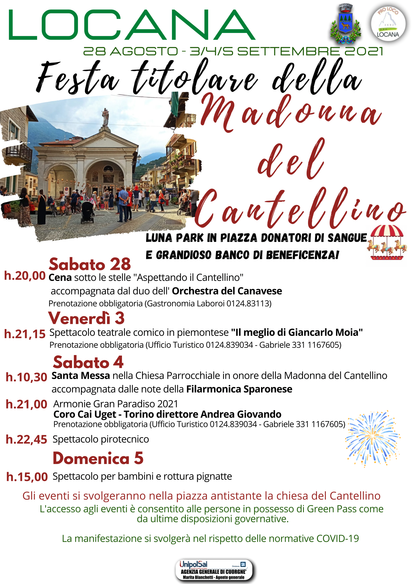 h. 10.30 Santa Messa nella Chiesa Parrocchiale in onore della Madonna del Cantellino accompagnata dalle note della Filarmonica Sparonese