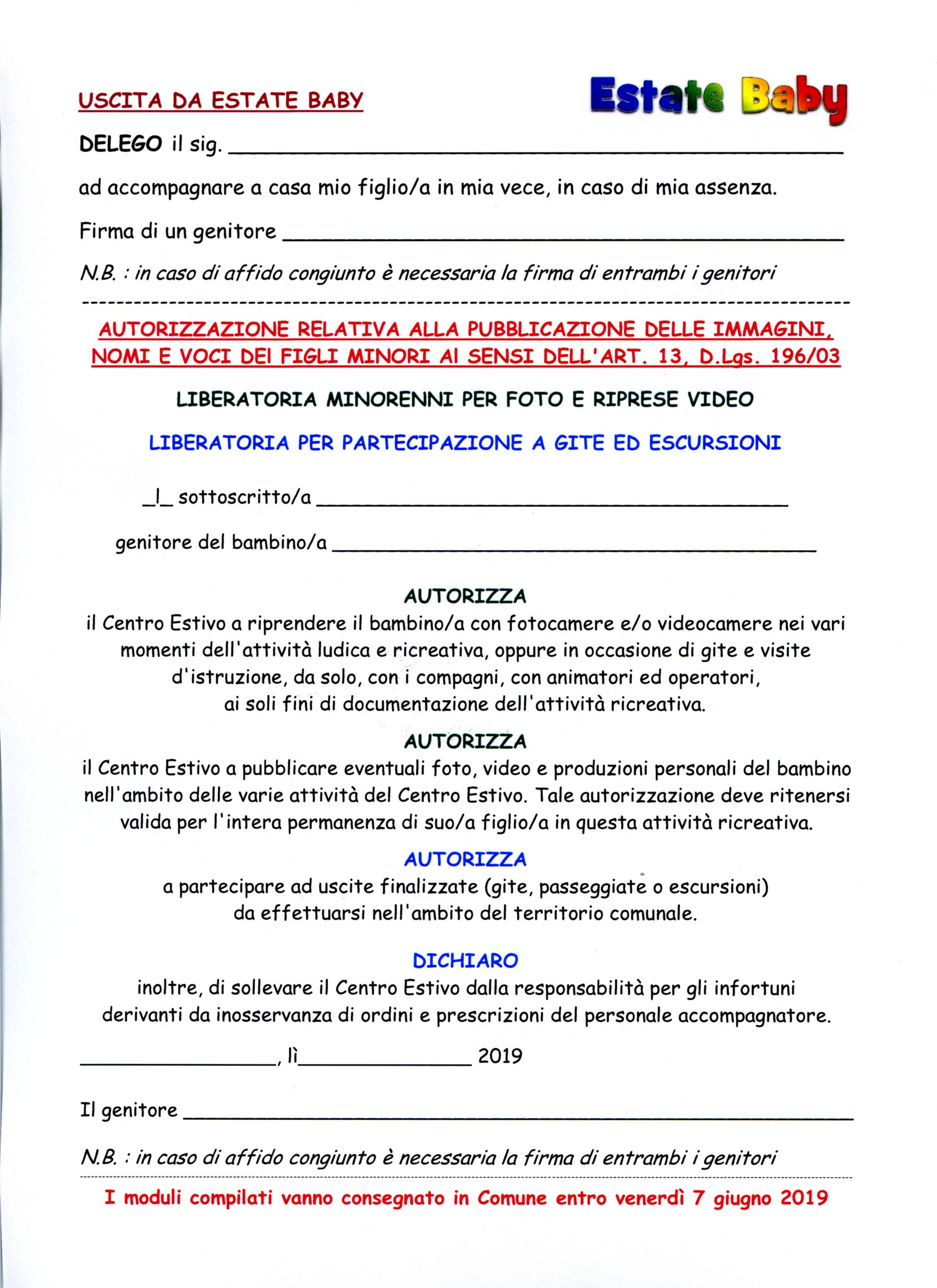 I moduli vanno consegnati in Comune entro il 7/6