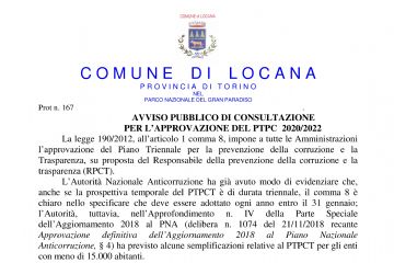 AVVISO PUBBLICO DI CONSULTAZIONE PER L'APPROVAZIONE DEL PTPC 2020/2022