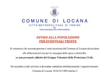 Si comunica che nessuna persona è stata incaricata dal Comune di Locana ad accedere