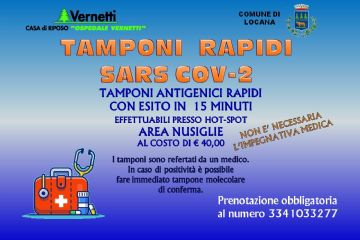 TAMPONI DRIVE IN A LOCANA IN CONVENZIONE CON LA RSA VERNETTI A PARTIRE DAL 9 NOVEMBRE