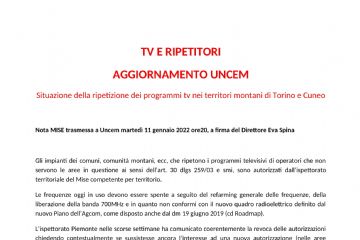 Nota MISE trasmessa a Uncem martedì 11 gennaio 2022 ore20, a firma del...