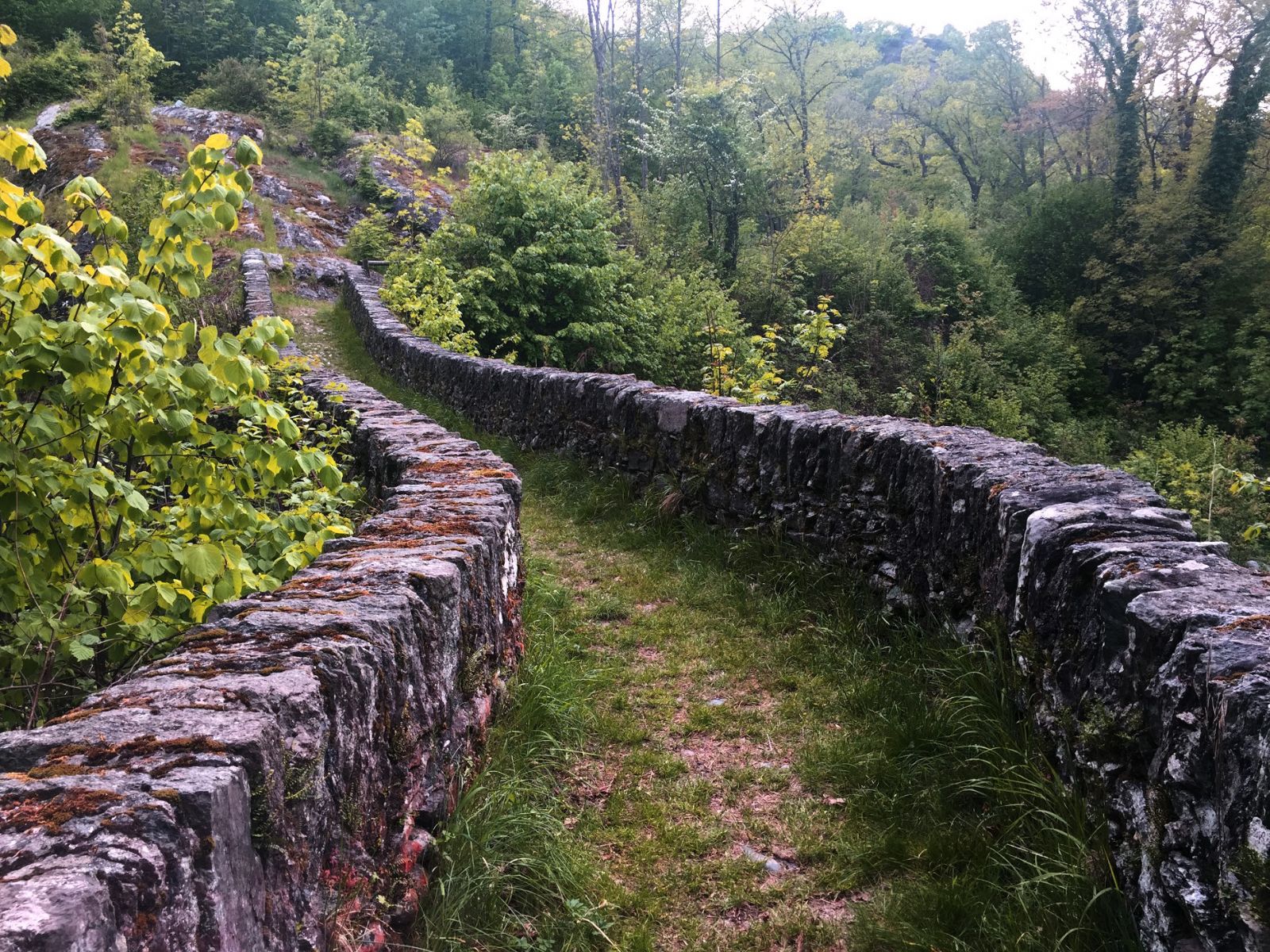 Il ponte, sicuramente di impianto pre-ottocentesco, si raggiunge in breve da un sentierino che si inoltra in un fitto bosco e costeggia il Rio Vallunga presso la Fraz. Vernè. La costruzione si presenta ad arcata unica impostata su un arco di cerchio ribassato, lievemente ogivale, che garantisce il transito perdonale tra le due sponde del rio. Un tempo risultava molto percorso in quanto situato sulla rotta di un importante via commerciale e di transito obbligato. L'intradosso dell'arco, l'armilla, i timpani e le spalle sono tutti interamente realizzate in pietra a spacco locale (gneiss granitoide), allettata in malta di calce a forte componente terroso. L'impalcato ha una cappa in cocci pesto e il piano di calpestio è realizzato in terra battuta. I parapetti in pietra a spacco, edificati con la medesima tecnica costruttiva del ponte come naturale proseguimento dei timpani, sono di enorme pregio poiché non hanno subito adeguamenti funzionali nel tempo e per questo risultano originari. Il ponte è tuttora agibile e si può ammirare, inserendolo in un breve itinerario turistico tra i boschi della Fraz. Vernè, che rendono un buon omaggio alla vegetazione locale.