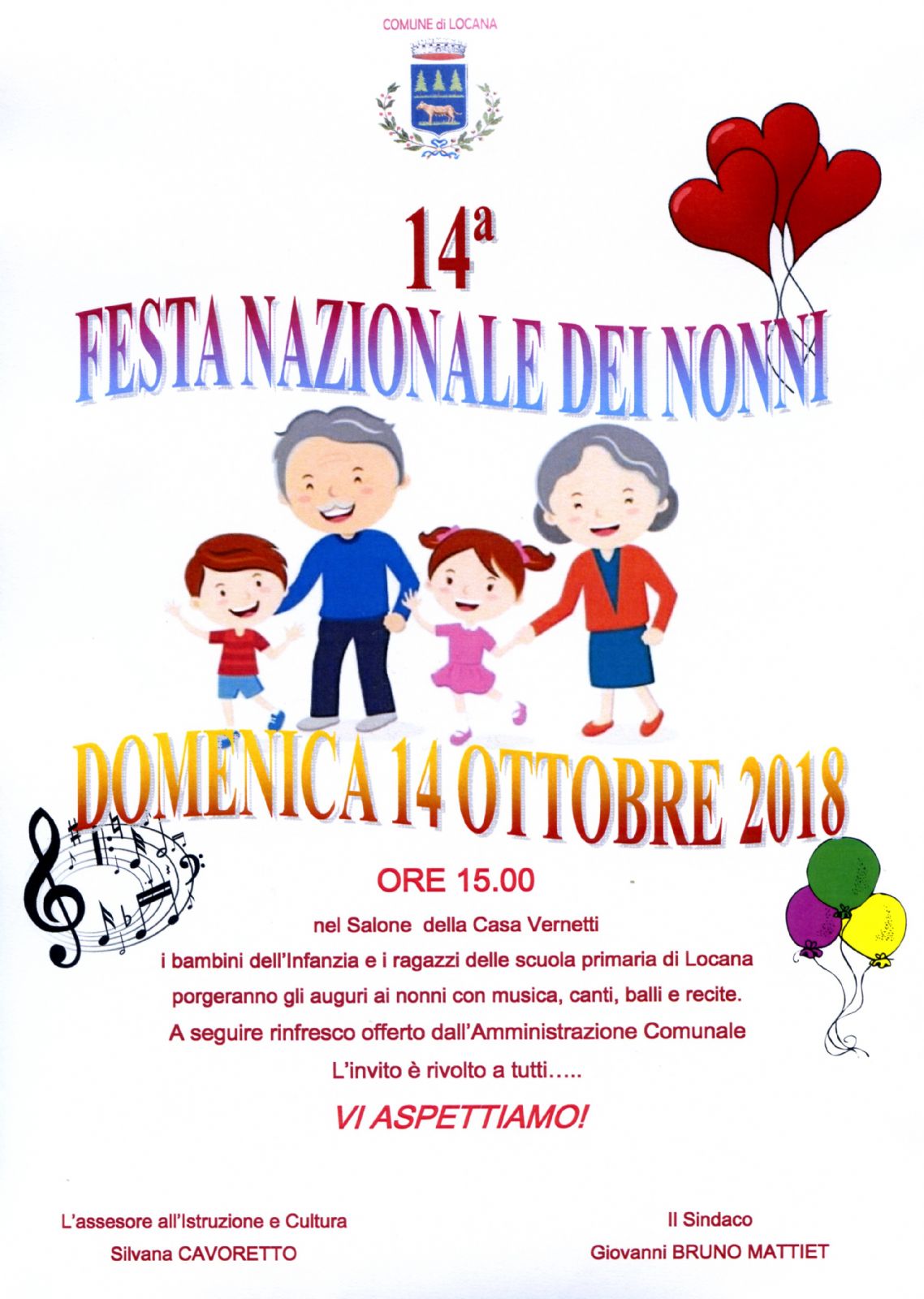 i bambini dell'infanzia e i ragazzi della scuola primaria di Locana porgeranno gli auguri ai nonni con musica, canti, balli e recite.
