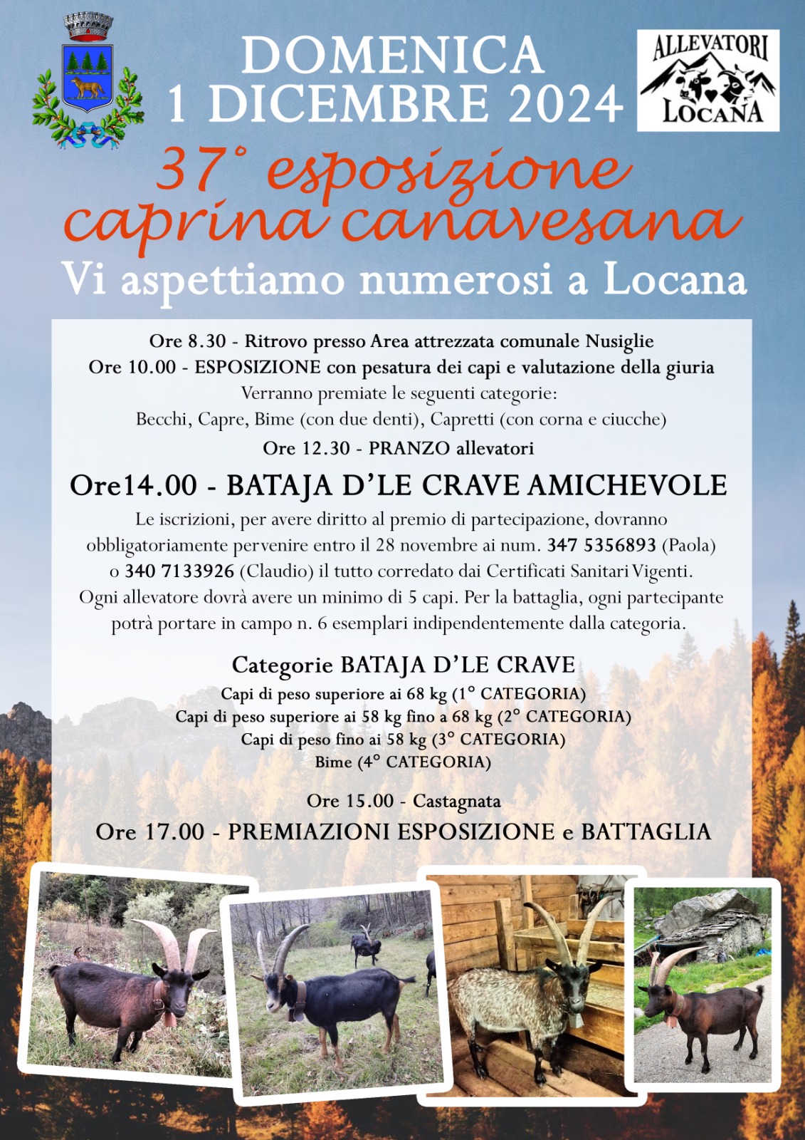 h. 10.00 - Esposizione, pesatura dei capi e valutazione della giuria. Verranno premiate le seguenti categorie: Becchi, Capre, Bime (con due denti), Capretti (con corna e ciucche).