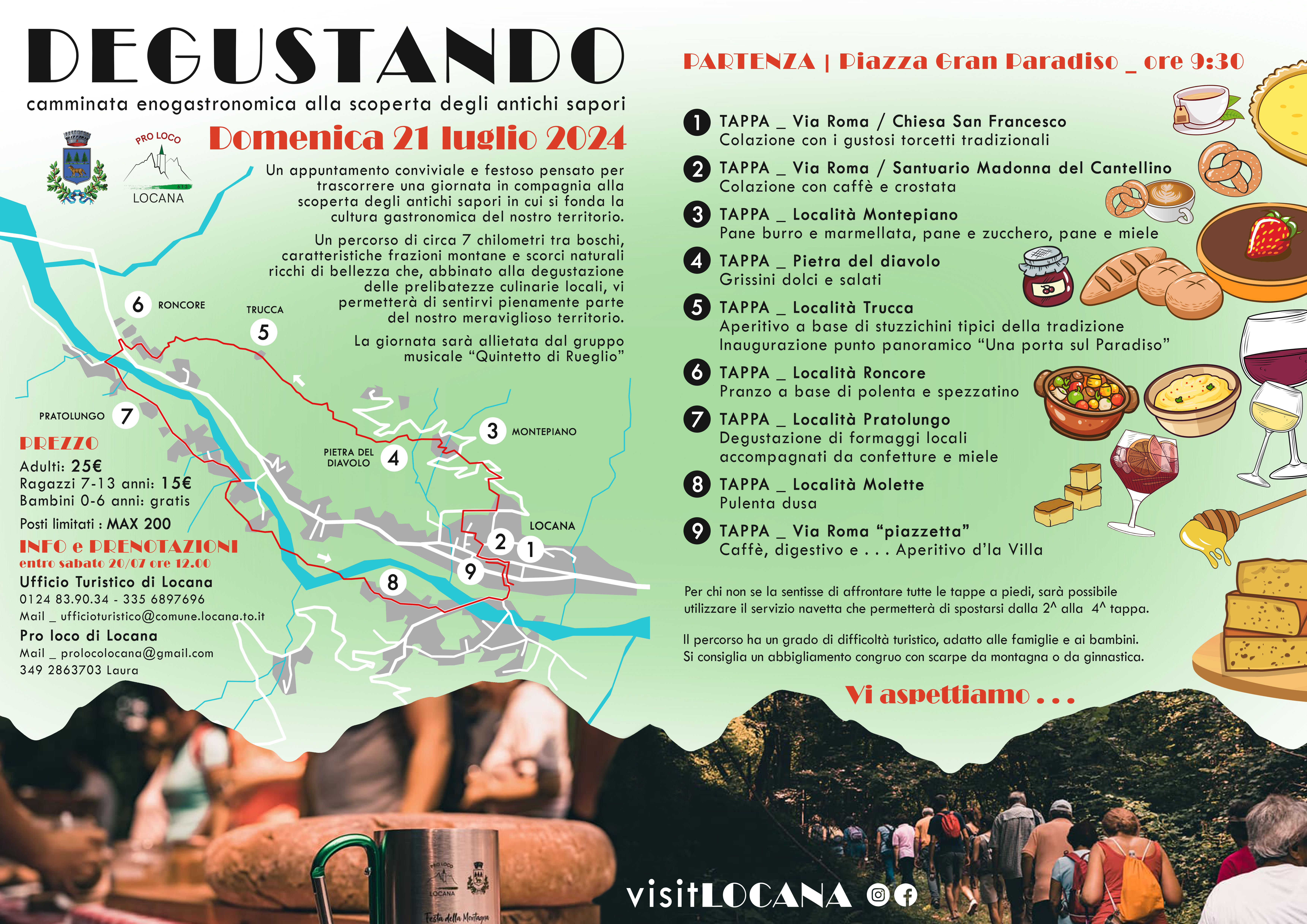 Degustando - passeggiata enogastronomica nelle frazioni di Locana con prodotti tipici a km 0 e a Marchio Gran Paradiso accompagnati dal “Quintetto di Rueglio”.