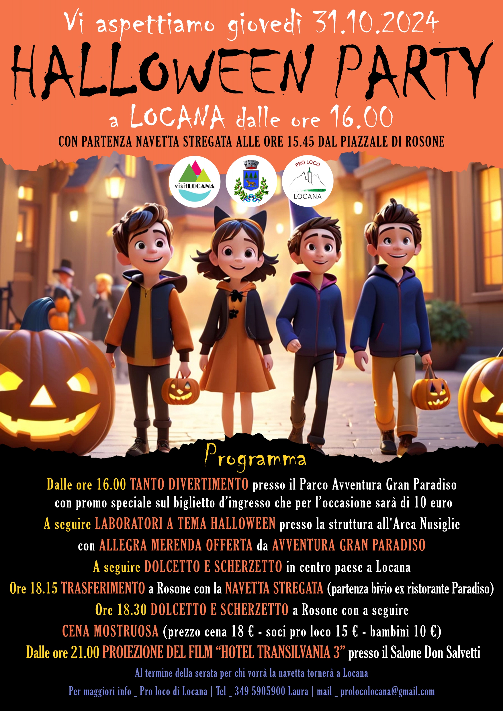 - A seguire Laboratori a tema Halloween presso la struttura all'Area Nusiglie con allegra merenda offerta da Avventura Gran Paradiso.