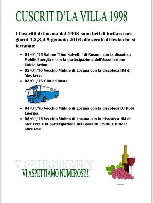 h. 22.30 Coscritti dei 18 anni - Serata con Discoteca “Energia”